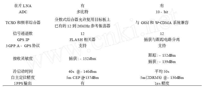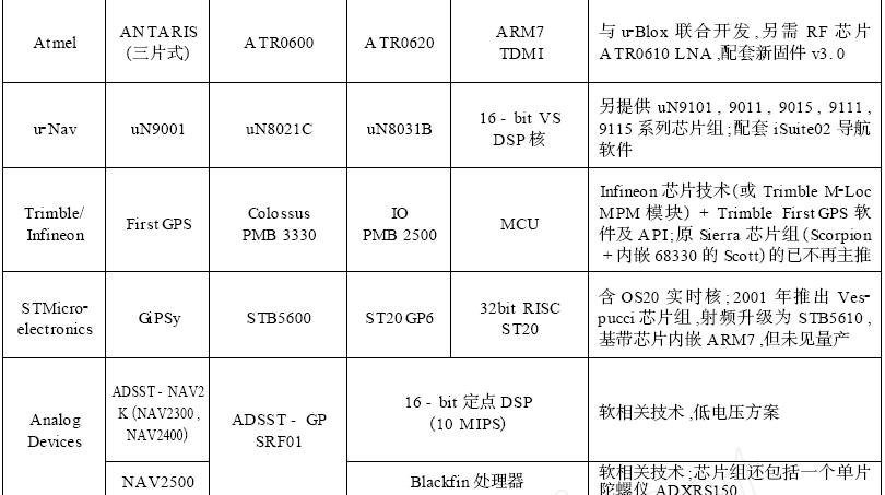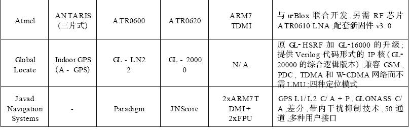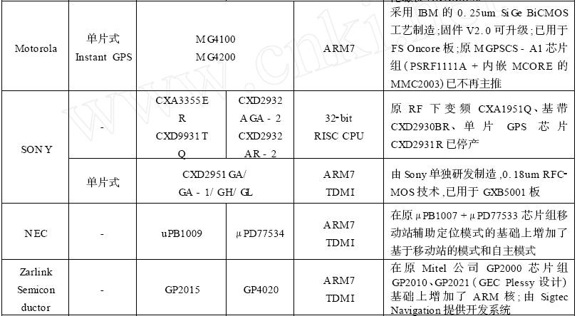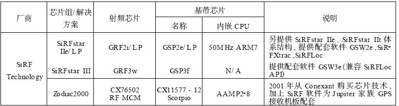 表1 主要GPS 射频加基带芯片组厂商及其产品一览表