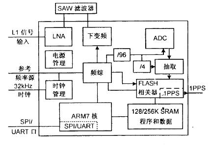 随着军用和民用对小尺寸、低功耗的不断追求,以及硬件设计水平和芯片制造工艺的不断进步,2002 年开始出现将GPS 射频与数字部分集成在一起的单芯片GPS 接收机,其中产品化的单片式GPS 接收机有Motorola 的“Instant GPS”(即时GPS) 和Sony Semiconductor 的CXD2951 系列。