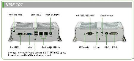 NISE 101无风扇PC是超薄,无风扇,工业等级的系统,机箱尺寸仅为185(W)×132(D)×54mm(H)。 基于Intel Atom-based N270 1.6GHZ处理器和945GSE嵌入式套片组,NISE 101无风扇PC是一个轻量极,高效能的解决方案,同时兼备性能和可靠性,因此拥有工业等级不间断系统的运行能力。