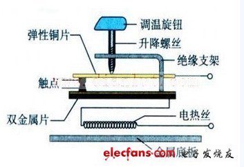 那么,怎样使电熨斗有不同温度呢?当你把调温钮上调时,上下触点随之上移。双金属片只需稍微下弯即可将触点分离。显然这时底板温度较低,双金属片可控制底板在较低温度下的恒温。当你把调温钮下调时,上下触点随之下移,双金属片必需下弯程度较大时,才能将触点分离。显然这时底板的温度较高,双金属片可控制底板在较高温度下的恒温。这样便可适应织物对不同温度的要求了。