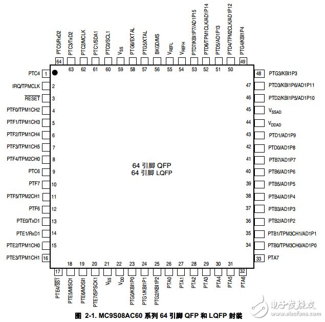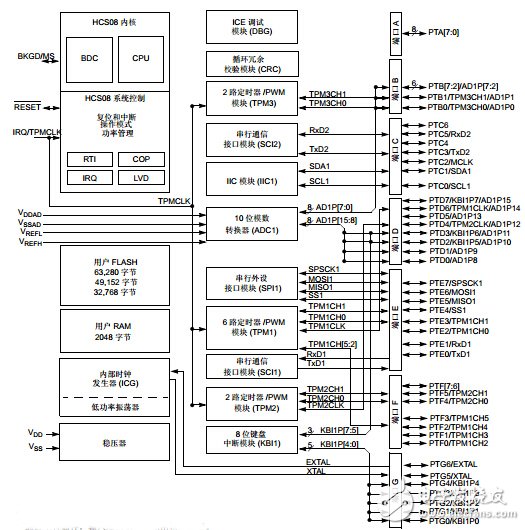 MC9S08AC60系列MCU是低成本、高性能HCS08系列8位微处理器单元 (MCU)的成员。这个系列的单片机均由一对引脚兼容的8位和32位器件组成,是Flexis系列器件的第3个系列产品。Flexis系列控制器是飞思卡尔控制器联合体的连接点,使8位与32位兼容性成为现实。