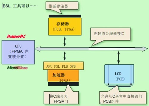 图 2 ESL 工具抽象了在 FPGA 中加速处理器应用程序有关的细节