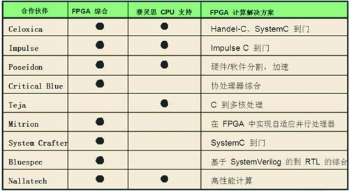 表 1 赛灵思 ESL 合作伙伴采用从高级语言到 FPGA 实现不同方法