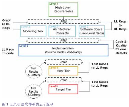 LDRA公司的ZDSD解决方案的层次模型如图1所示。在嵌入式系统开发项目中,层次模型包含了五个基本级别,随着对设计过程和项目的目标、中间产品和整体生产率的关注的不同,这些级别可以进行调整。