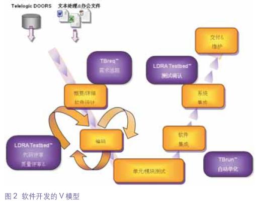 LDRA公司的ZDSD解决方案完全适合上文描述的ZDSD模型的要求。ZDSD解决方案在V型软件开发中的应用如图2所示。