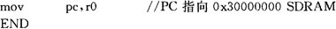 (6) 执行在页末的指令,将PC指针指向SDRAM的0x30000000处;