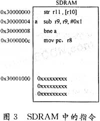 (4) 将需要在SDRAM中运行的4条指令搬入SDRAM 0x30000000处;