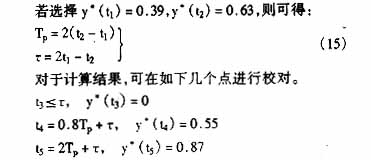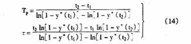 为确定Tp、τ应选y*(t)的两个坐标值,以便联立方程。现选择t1及t2且满足t1>t2>τ,由此解得: