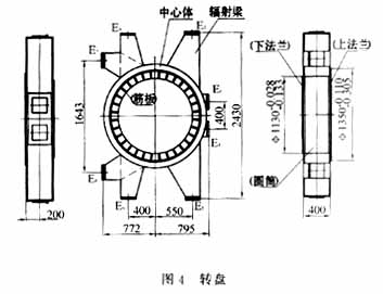 转盘(图4)采用板梁结构,由厚钢板焊接而成,其结构特点及设计原理如下:
