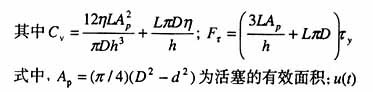 为活塞与缸体的相对流速;D为缸体内径;d为活塞轴直径,L为活塞的长度;h为活塞与缸体间隙;