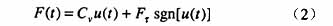 是磁流变液的动力粘度。由(2)式可以看出剪切阀式磁流变减振器提供的阻尼力的第一项相当于普通流体减振器的粘滞阻尼力,不具有可调性;第二项与磁流变液的屈服应力有关,具有库仑摩擦阻尼力特性,是磁流变减振器的可调阻尼力,反映了磁流变减振器特殊的电控特性。另外,(2)式也表明了磁流变减振器的阻尼力与相对流速u(t)之间存在线性关系。