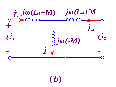 图7-4-1  耦合电感单侧异名端连接及其去耦等效电路