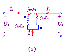 图7-4-1(a)所示耦合电感,今将其一侧的同名端连接,而另一侧的不连接,如图7-4-1(b)所示,这对原电路不产生任何影响。为了研究问题清楚起见,可进而画成图7-4-1(c)所示电路。于是根据图(c)中规定的电压参考极性与电流参考方向即可列出方程: