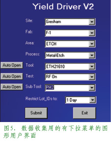 在线上缺陷分析中,经常使用高级的软件工具。现存的缺陷数据分析软件中,KLA-Tencor的Klarity,是为在线检查数据的工程分析而设计的,它为有经验的用户提供了强大的,交互式功能。不幸的是,它在处理数据结构,需要管理信息系谱,将测试结果与特定的工艺区域、工艺类型、设备、子设备,最后与测试时间联系起来时,其能力有一定的局限性。为了满足这种链接的需求,以及满足监控处理、测试结果的特定组织报告的需求, 我们决定设计一种新的用户界面,使用户能够进入已经存在的缺陷数据库以及其他的数据库,以便能够以简单易用的界面对设备缺陷进行控制。这个新的界面叫做Yield Driver。