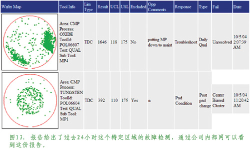 如图13所示的报告,就是设计用来翻班交接或者生产会议时的快速日常回顾。这个报告给出了过去24小时这个特定区域所有故障检测的细节。它是系统产生的,张贴在内部网上,能够快速溜览。