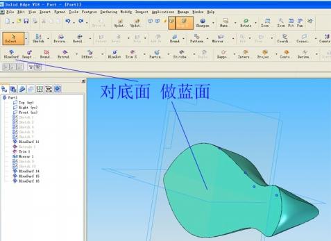蓝面(blue surface)--选择一个边界曲线,右击--再选择一个曲线右击。点击向导线按钮(选一个曲线右击在选择,右击。。。)生成曲面