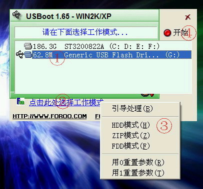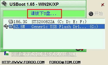 下载后把UBSBOOT程序解压缩出来,再把你的U盘插上,按照下面的步骤就可以把你的U盘制作成DOS启动型的(注意事先备份U盘中有用的数据)