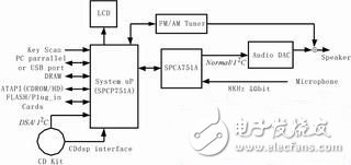 bsp; 便携式MP3播放器的系统框图如图1所示,各部分的功能说明如下: