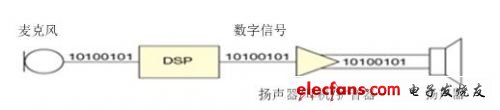 图2 IC设计人员正在换能器中的ADC、DAC和调制器集成到信号链的另一端,从而无需在PCB板上布放模拟音频信号,并减少了信号链上的器件数量。图中是一个完整数字音频信号链的例子。