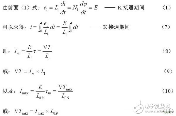 (9)式是用来计算开关变压器或储能电感线圈伏秒容量VT的公式,与(8)式和(10)、(11)式对应。