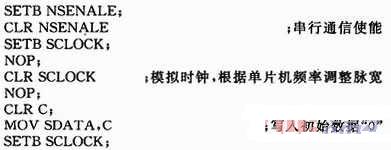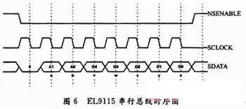 延迟寄存器数据由外部AVR单片机程序设置(图5中未画出),NSEnable,SCLOCK,SDATA三个引脚和单片机的三个引脚构成串行总线通信,通信时序如图6所示。