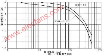 (图二)。输出电压为-2.5V 时,如果输入电压为2.7V,电流损耗为86μA ;如果输入电压12.5V,则电流损耗为105μA。输出基准电压为-5V 时,如果输入电压为5.2V,电流损耗为140μA ;如果输入电压12.5V,则电流损耗为140μA。