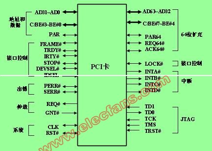 PCI总线引线:高密度接插件,分基本插座(32位)及扩充插座(64位)。