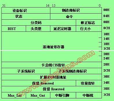 配置空间的访问决定于命令字编码,在IDSEL线上发出有效信号,地址线低8位用于访问配置空间的256字节存储器。